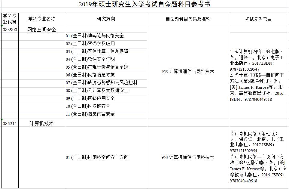 必赢76net线路官网2019年硕士研究生入学考试自命题科目参考书