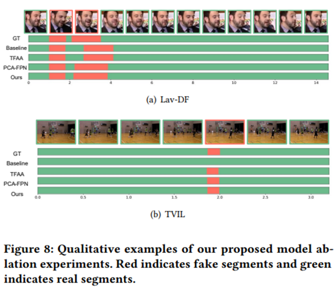 随着人工智能生成技术的不断发展,生成的虚假媒体愈加逼真,使“眼见为实”、“有图有真相”的思维方式受到质疑,因此,多媒体内容的真伪鉴别变得愈加困难。现有的研究通常仅基于二分类器来区分整段多媒体内容的真伪,对于局部伪造内容缺乏有效的检测手段。这篇论文正是针对这一问题提出了一种新颖的通用框架——UMMAFormer。该框架能够适应不同模态多媒体内容,包括音频、视频或者音视频多模态,并从中精准预测伪造片段的开始和结束时间,实现时序局部伪造内容的定位。为了增强对时序异常特征的关注,本文采用了一种创新的时序特征异常注意模块,这使得系统在检测伪造内容时更加准确。此外,针对局部短伪造片段特征的增强,论文还引入了并行交叉注意特征金字塔网络,进一步提升了性能。为了验证所提方法的有效性,还构建了一种专门针对视频涂改场景的时序视频涂改定位数据集。实验结果表明,所提方法在多个基准数据集(如Lav-DF、TVIL、Psynd等)上均取得了最先进的性能。